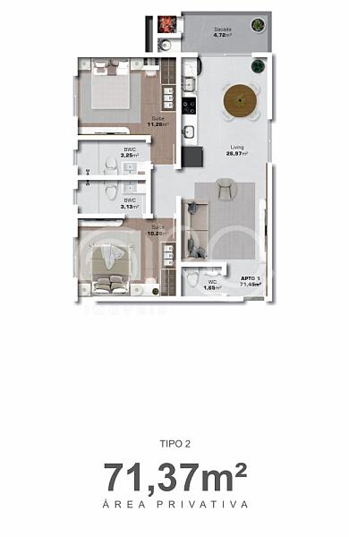 71,37 m² de área privativa