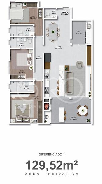 129,52 m² de área privativa