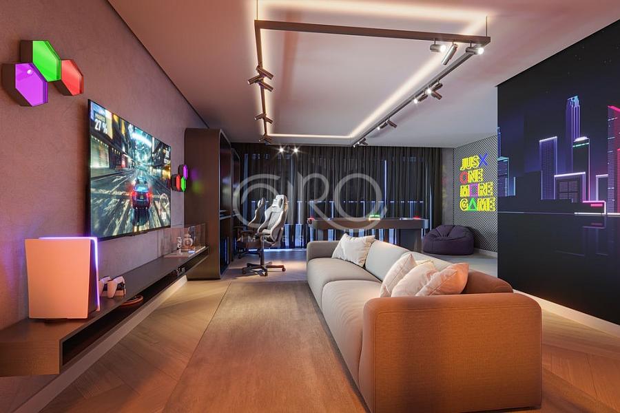 E mais: uma área de lazer completa em três pavimentos, incluindo um rooftop panorâmico com 4 espaços para festas. Ambientes decorados e mobiliados para a diversão e facilidade de toda a família.